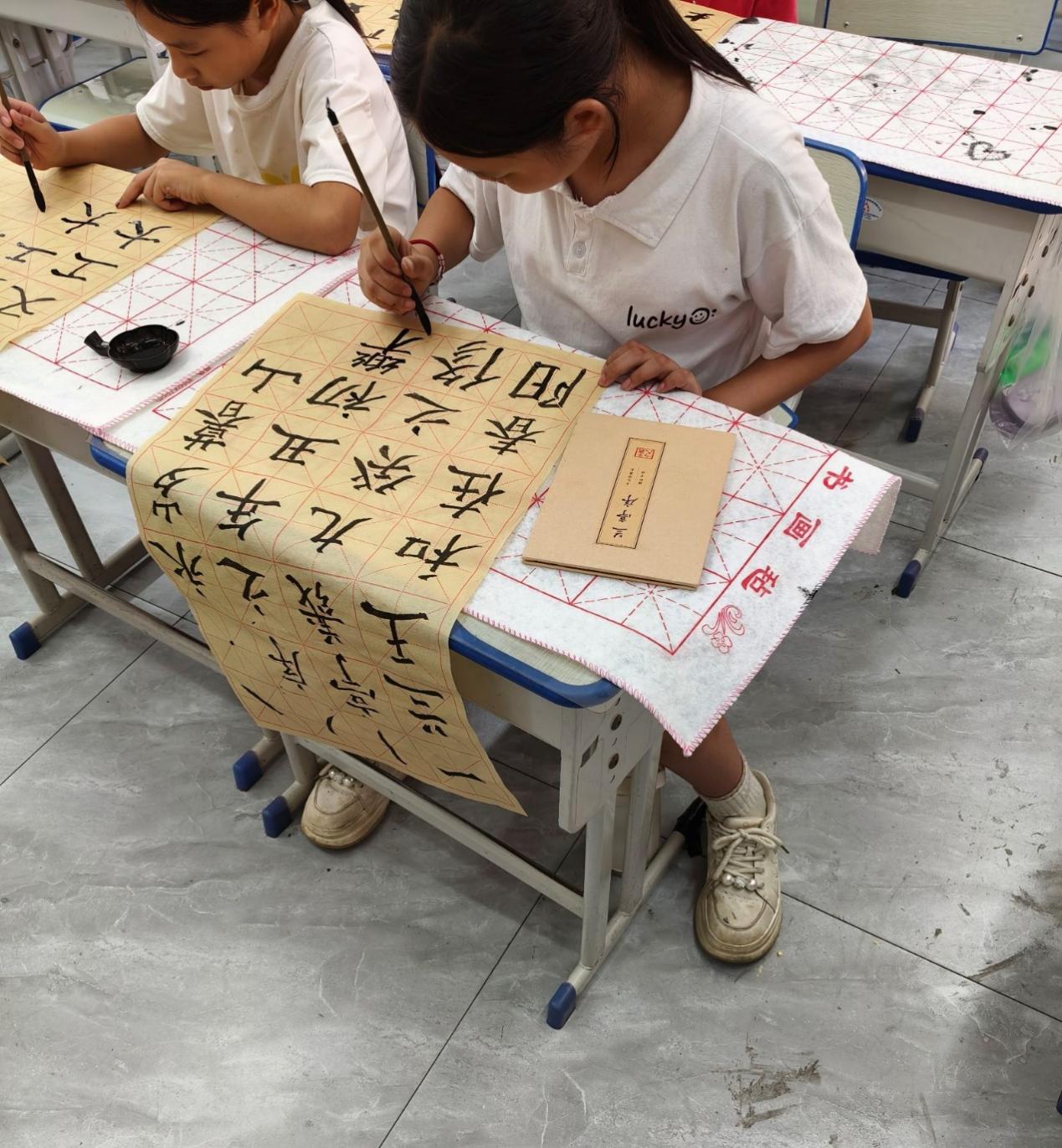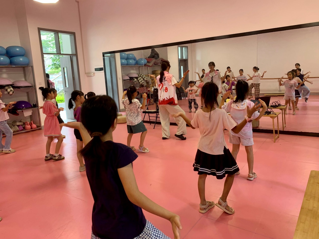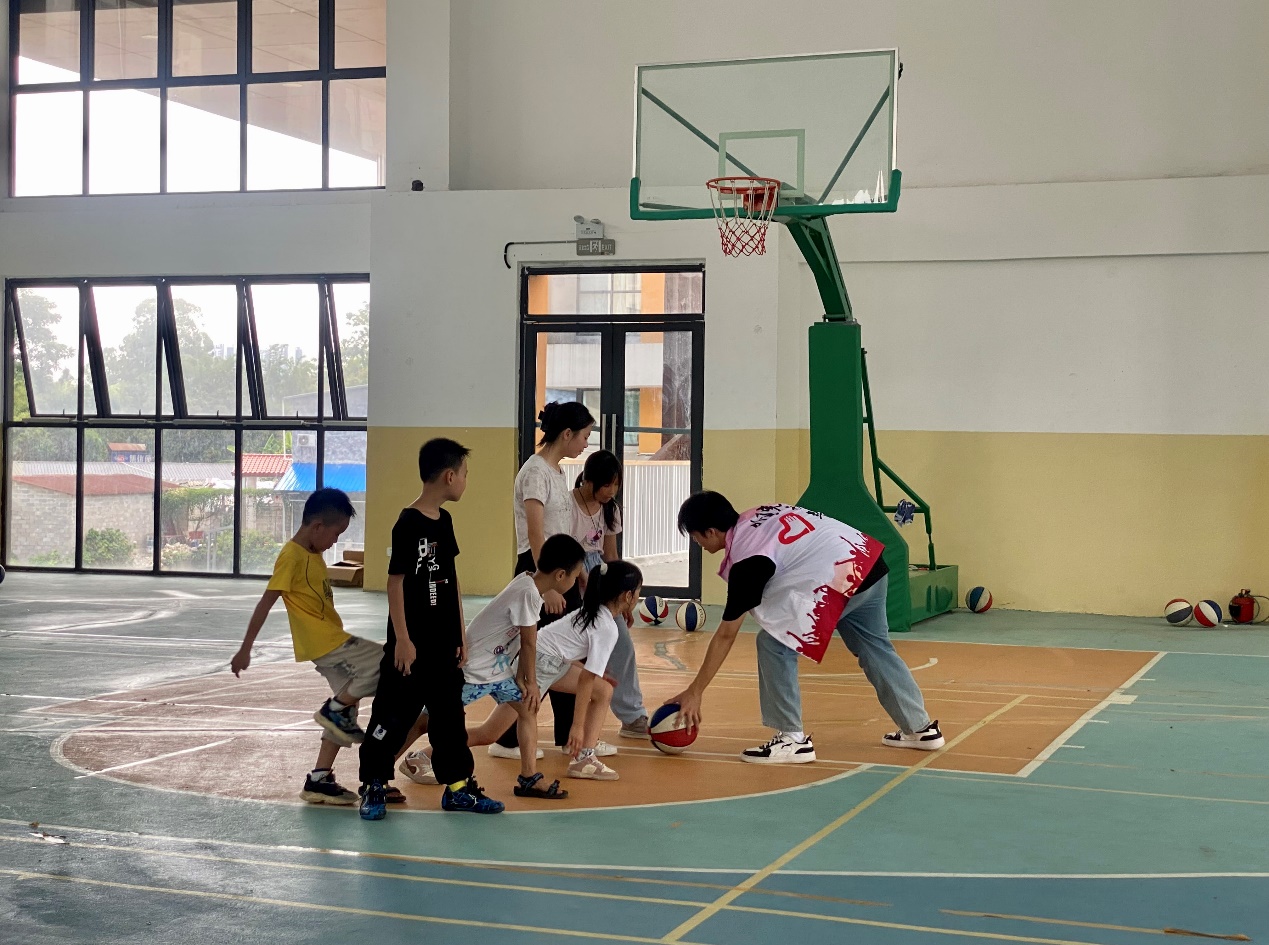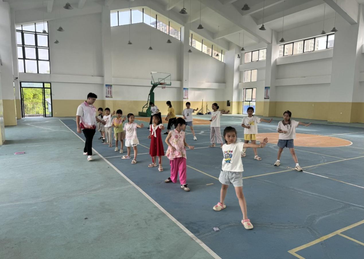 此外,“舞韵工坊”课程融合壮族舞与流行舞元素,让孩子们用肢体表达自我;“武韵风采秀”课程在教授“少年第一拳”时融入武德教育,传递 “坚持与敬畏”的精神;“音乐趣味启蒙”课程则以“歌声育心,旋律传情”为特色,志愿者们带领孩子们学唱经典歌曲《明天会更好》。“运动探索营”课程通过 “三人两足接力”、“篮球投篮比赛”等团队活动,让孩子们在协作中感受运动的快乐。“书法与绘画工坊”课程里,孩子们用笔墨勾勒大藤峡山水,用色彩描绘心中的乡村未来…… 多元课程如春雨般浸润童心,让乡村孩子在知识与欢乐中收获成长。