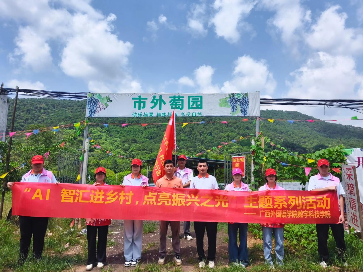 7 月 17 日,团队走进桂平市西山镇白兰村 “市外萄园” 葡萄种植基地,开启“科技助农”实践。志愿者们先当起 “学徒”,向农民大哥学习葡萄整形修剪、病虫害绿色防控等农技知识;再化身“科技使者”,手把手传授电商运营、直播带货技巧。指导老师李万鑫架起直播设备,与农民大哥一同出镜推介葡萄直播十余场,助力打通销售渠道。“原来手机不仅能刷视频,还能卖葡萄!”农民大哥的感慨,道出了科技为乡村产业带来的新可能。