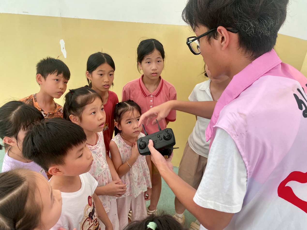 科技启蒙课程成为最受孩子们欢迎的 “亮点”。“科学实验探索营” 课程中,无人机、机器人、机器狗等科技教具首次走进乡村课堂,孩子们在志愿者的指导下操控无人机完成 “穿越障碍”“精准投递”等趣味任务,在惊叹与欢笑中触摸前沿科技;“趣味编程启蒙” 课程中志愿者们则通过 Scratch 图形化工具,让孩子们拖拽模块设计简单游戏,零门槛感受代码的逻辑魅力。这些课程不仅是团队“AI 赋能进乡村”专题的重要实践,更在孩子们心中种下了 “科技改变生活”的种子 —— 有孩子在课堂上认真写下梦想:“长大后要用无人机给山里送书”。