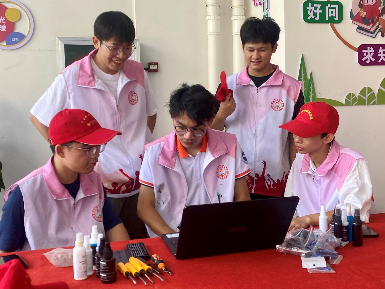 次日,团队联合西山镇大藤峡社区开展义务维修活动,用专业技能解决村民“急难愁盼”。志愿者们在社区文化活动中心设点,分时段为居民提供手机清灰、贴膜、内存清理,以及电脑拆机清灰、故障排查等服务。从帮助老人修复卡顿的智能手机,到为农户检修用于记录种植数据的电脑,志愿者们共处理各类电子设备96台,成功修复82台,服务超200人次。同步开设的“科技小课堂”还讲解了防诈骗和设备保养知识,用耐心与专业架起跨越“数字鸿沟”的桥梁。