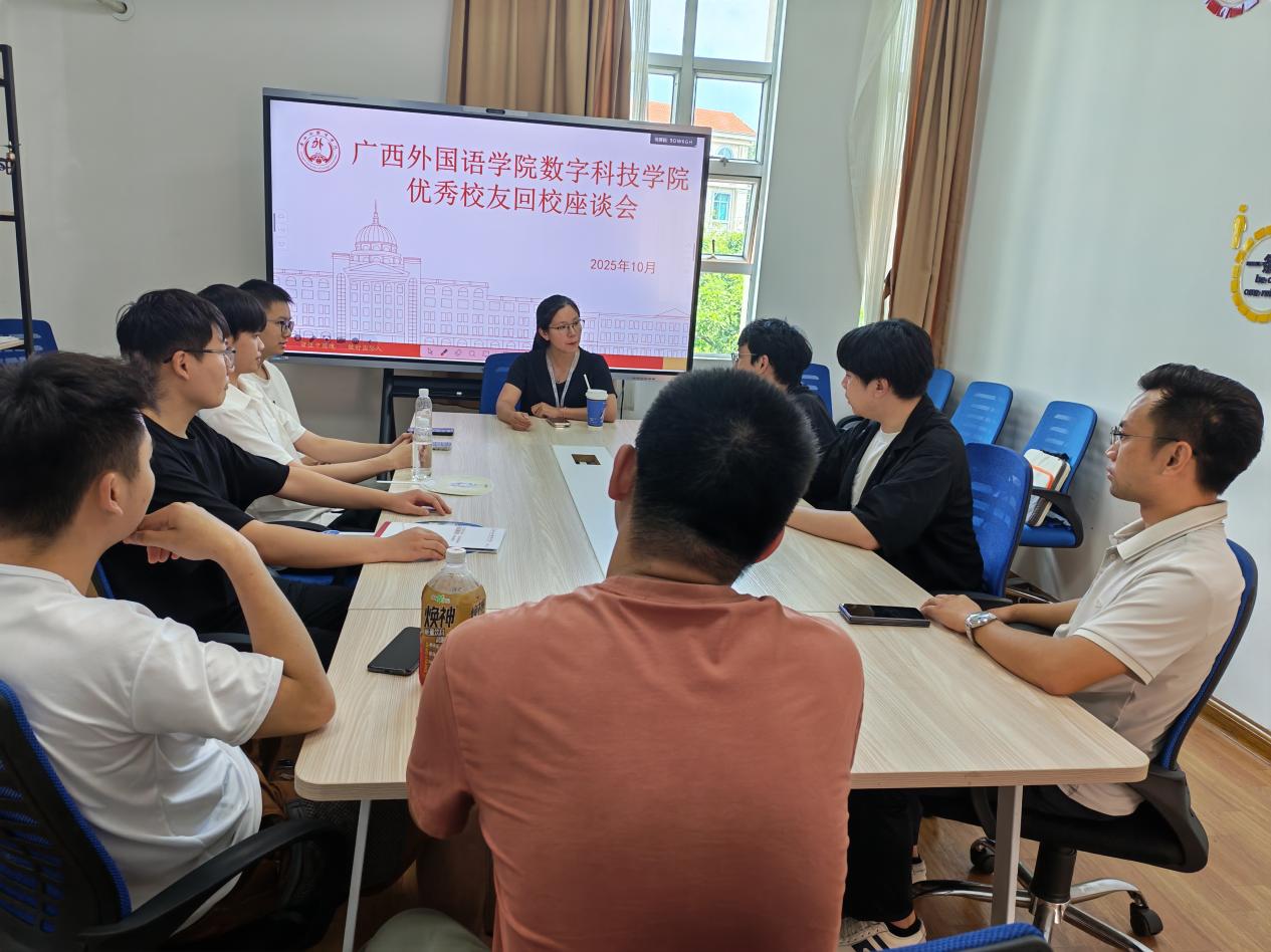 10月17日,广西外国语学院数字科技学院迎来了一场别开生面的活动——校友企业招聘会暨优秀校友回校座谈会。此次活动旨在搭建学生与校友企业之间的交流平台,促进学生就业,同时通过校友的经验分享,激励和指导在校学生。