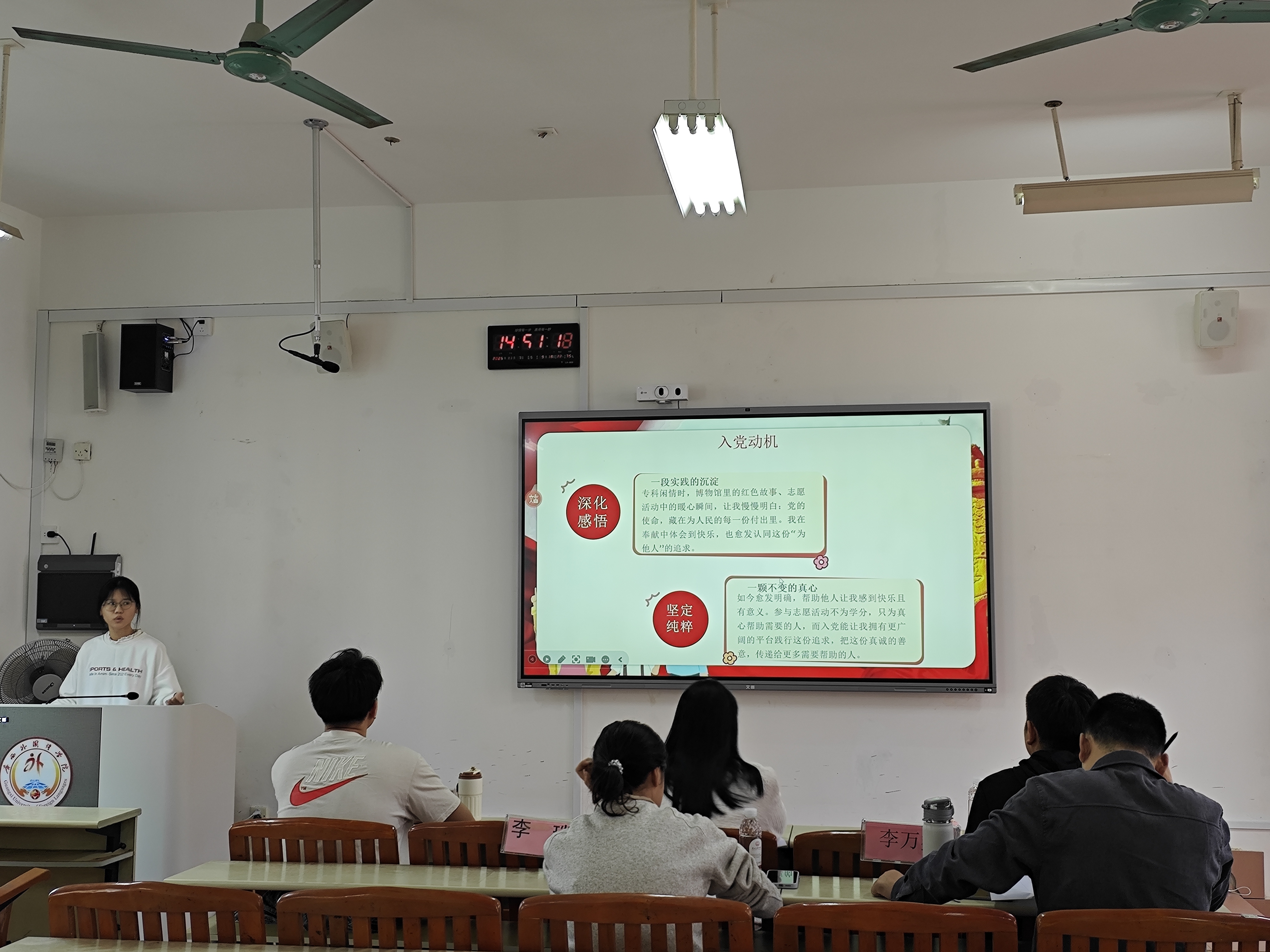答辩过程中,拟发展对象们围绕个人思想政治表现、理论学习情况、社会实践与志愿服务经历以及对党的认识等方面进行陈述,展现了他们对党的坚定信仰和积极向党组织靠拢的决心。由党总支副书记、委员、组织员、各党支部书记、辅导员组成的答辩工作组,结合实际情况,围绕党的理论知识、时事热点等角度进行提问,考察拟发展对象的政治素养和综合能力,同时给予针对性的指导,帮助他们进一步明确自身不足,提升思想境界。