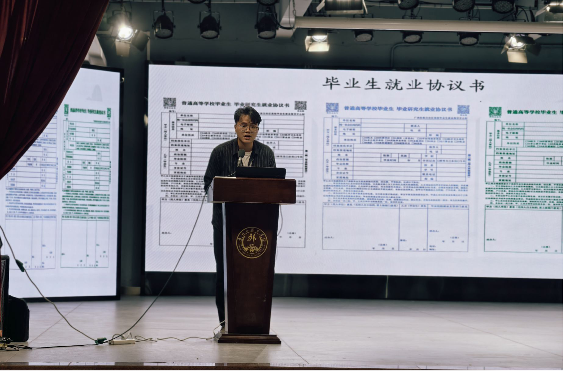 辅导员韦云润老师带来毕业生就业协议书专题分享,围绕协议签订流程、关键条款解读、权益保障要点等核心内容展开讲解,帮助同学们明晰签约注意事项,规避就业风险,为顺利开启职业之路筑牢基础。