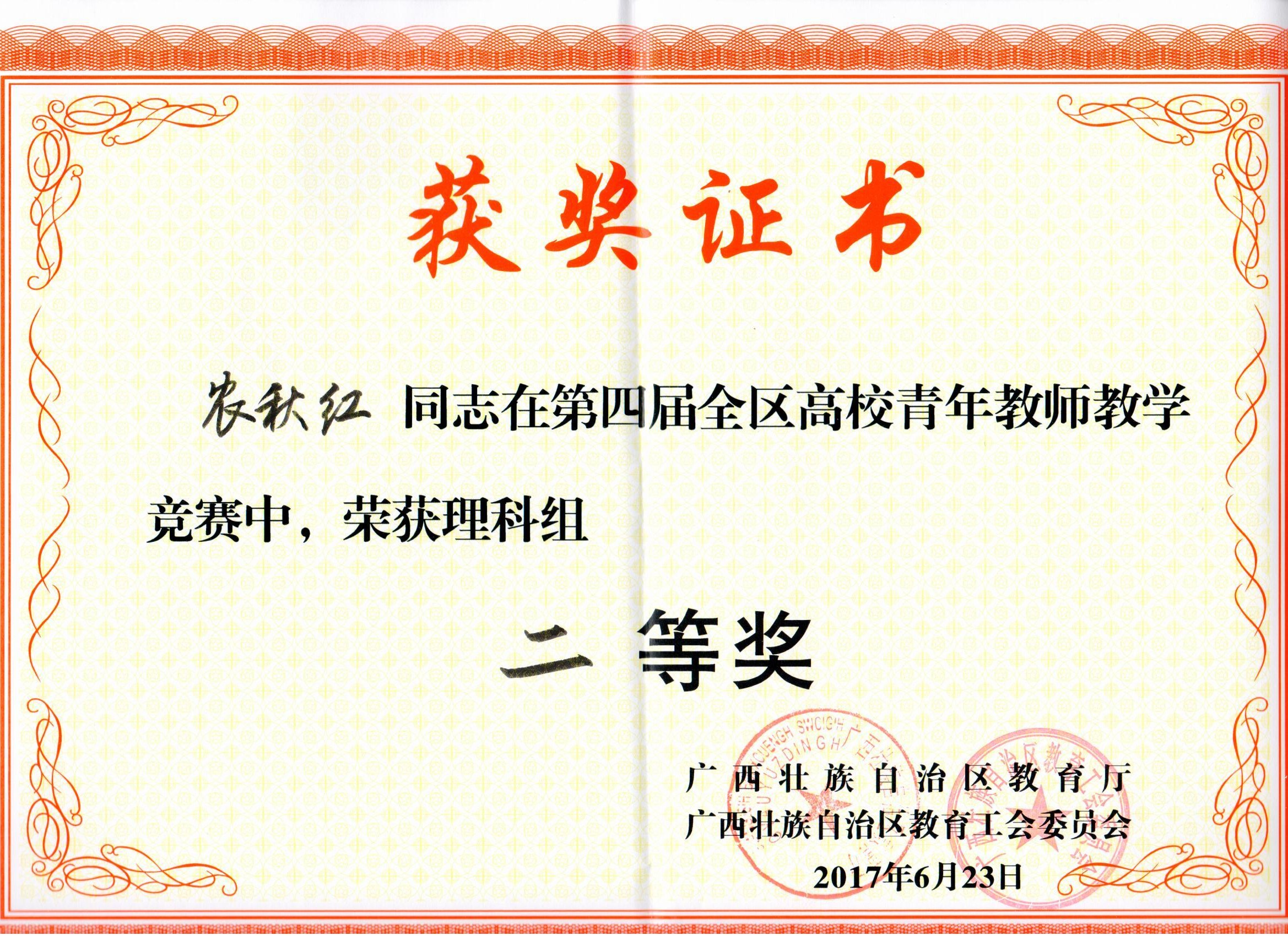 农秋红老师获第四届全区高校青年教师教学竞赛理科组二等奖