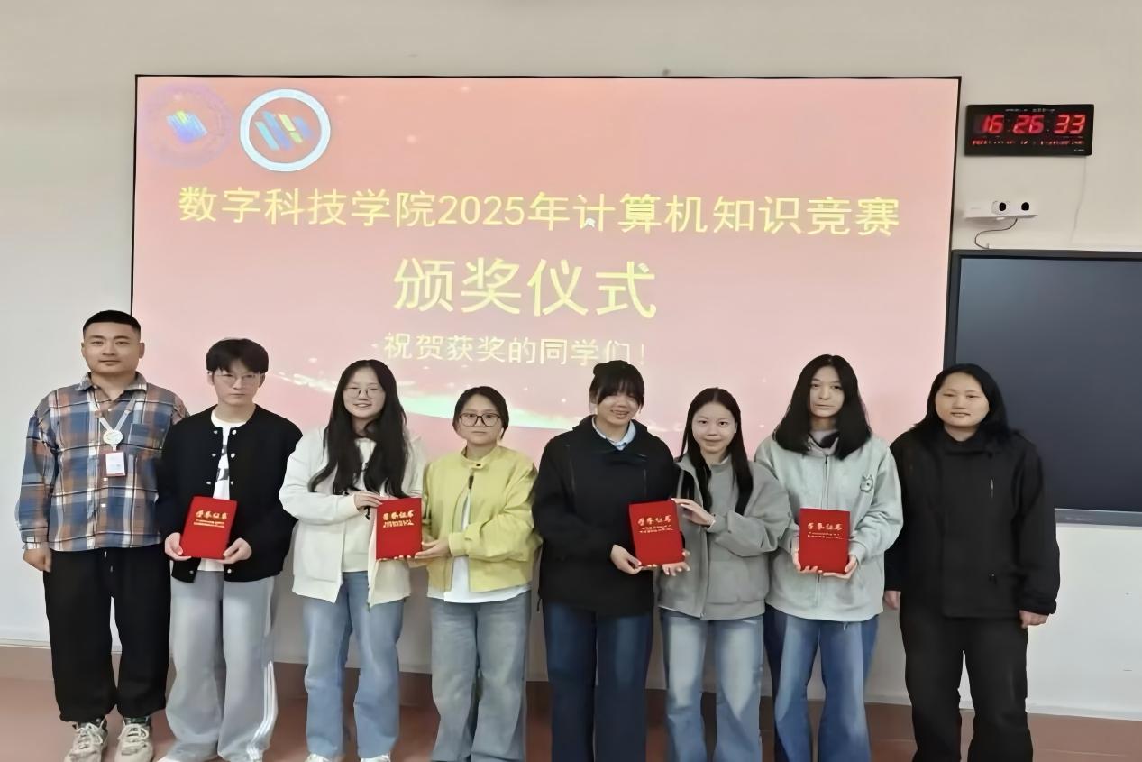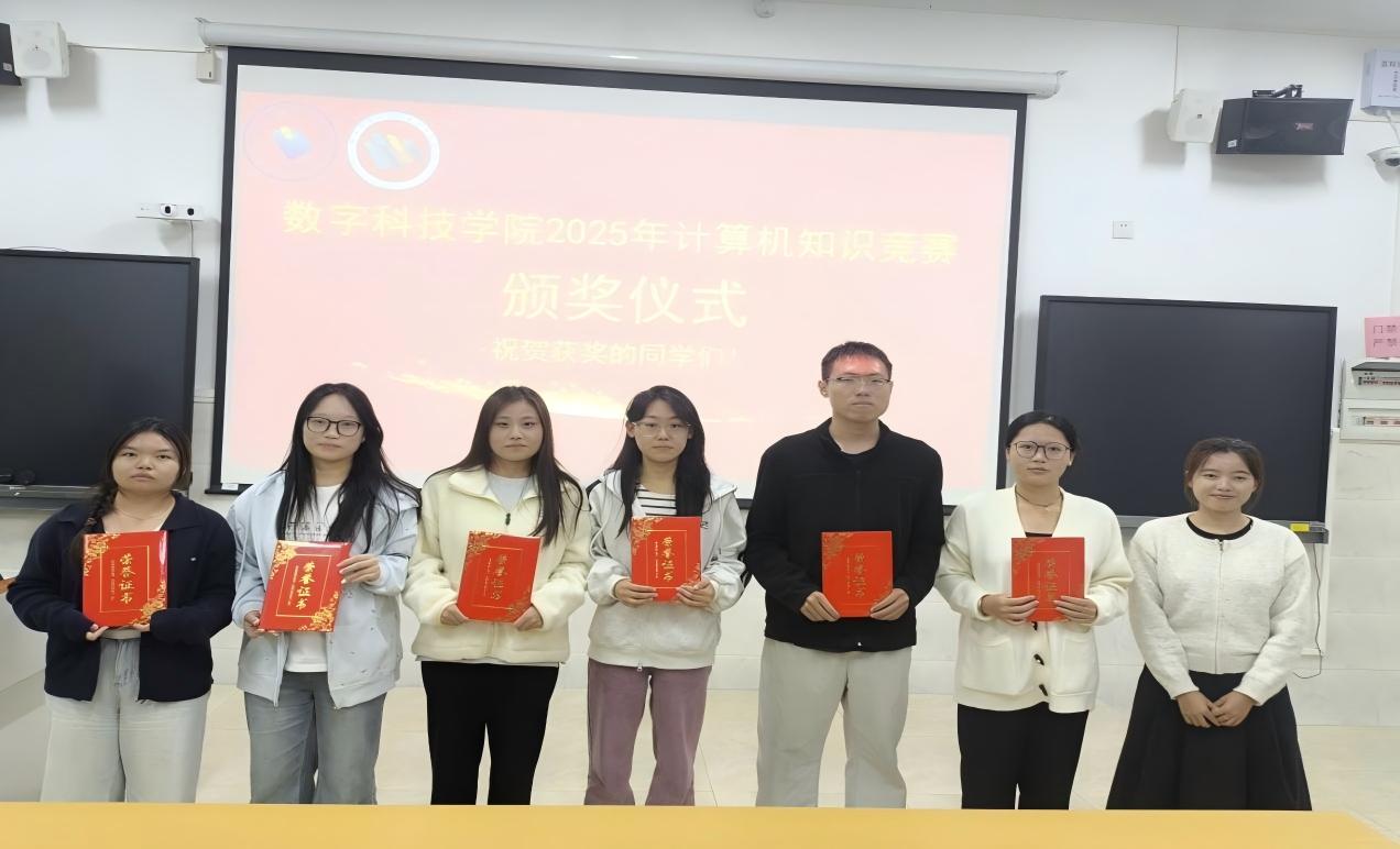 最后,参加本次比赛的领导、老师以及学院团委、学生会及所有参赛人员留影合照。数字科技学院2025“数科萌新知多少,趣味挑战赢未来”计算机知识竞赛圆满落幕。愿此次参与比赛的同学在未来的日子里能够不忘初心,不断加强自己的专业知识,牢固自己的专业本领,勇迎困难和挑战!