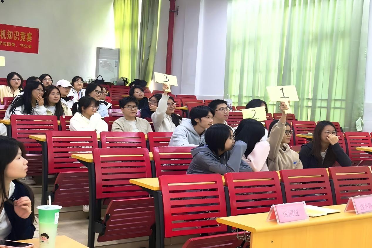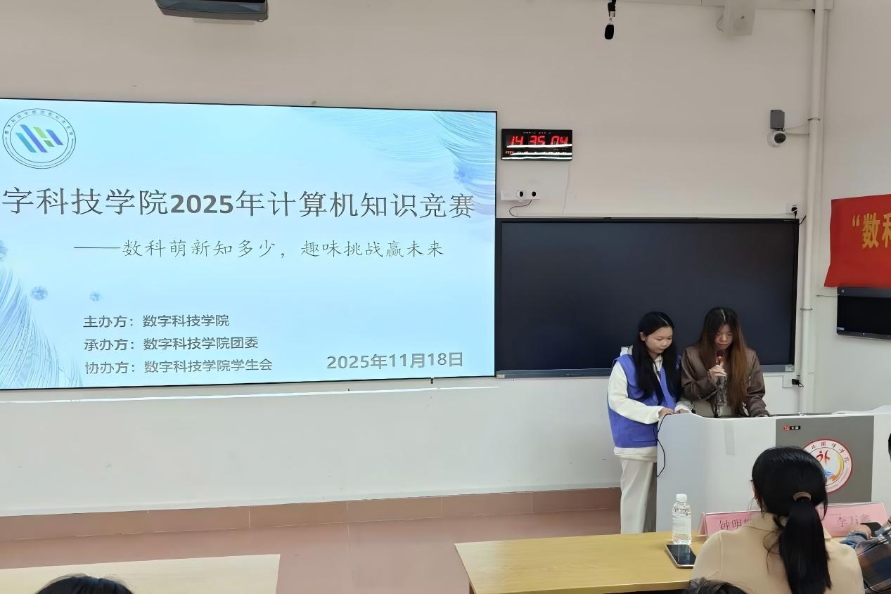 为进一步激发与巩固计算机相关专业新生的知识掌握程度及运用能力,增长数字科技学院2025级新生计算机技术的专业知识。由数字科技学院团委、学生会承办的“数科萌新知多少,趣味挑战赢未来”计算机知识竞赛,于2025年11月18日以及25日,分别在五合和空港校区举办。本次竞赛由数字科技学院党总支书记、副院长钟明辉老师与团委书记李万鑫老师,以及各队伍参赛选手、观摩人员和团委、学生会工作人员共同参与。