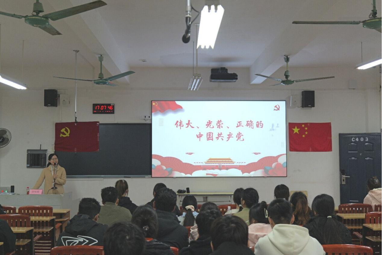 11月18日下午,中共广西外国语学院委员会党委党校第38期入党积极分子培训班党课第二章《伟大、光荣、正确的中国共产党》在五合校区大成楼C403开展,我院组织第38期入党积极分子参加学习,主讲人为数字科技学院党总支书记钟明辉同志。
