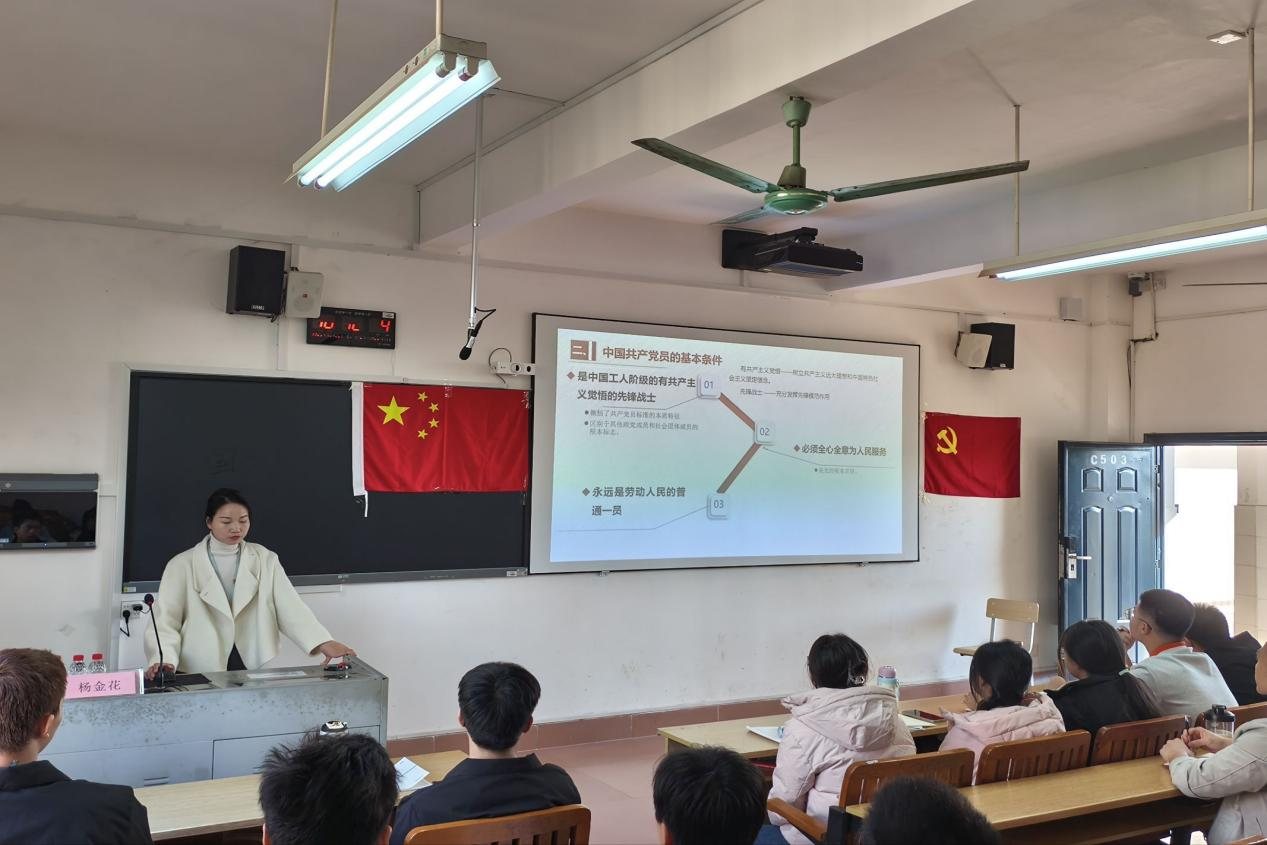 11月20日下午,中共广西外国语学院委员会党委党校第38期入党积极分子、预备党员培训班专题党课《中国共产党的条件、义务和权力》在五合校区大成楼C503开展,我院组织第38期积极分子、预备党员参加学习,主讲人为数字科技学院学生第二党支部书记杨金花同志。