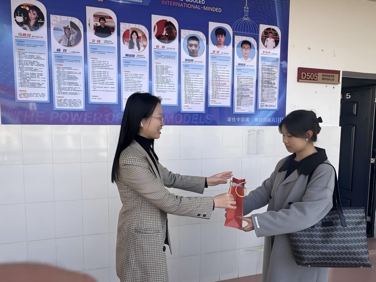 “暖心送关怀”考研慰问暨文具大礼包发放活动,学院副院长陈忠伟老师向学生传递关怀问候,分享往届考研成功经验,引导学生坚定备考信心、科学规划复习,缓解“考不上”的心理负担,明确“学院是全体考研学子最坚实的后盾”。