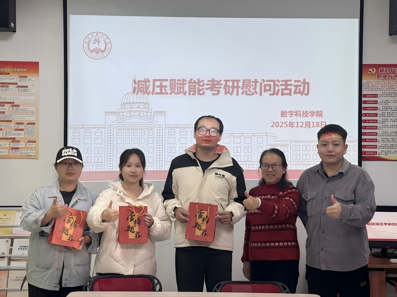 为有效缓解备考期间的心理压力与焦虑情绪,数字科技学院于12月5日至20日,秉持“以生为本、精准服务”原则,开展考研学生减压专项活动,为全院考研学子提供多层次的支持保障。