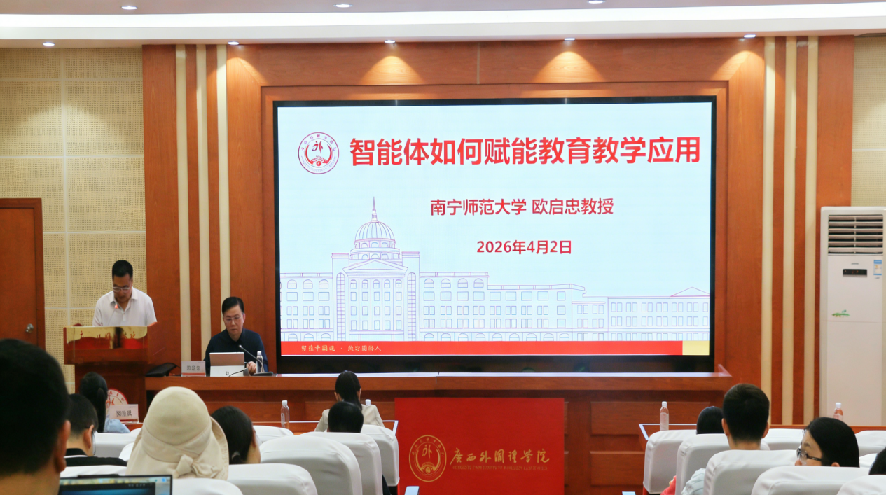 本次讲座以“智能体如何赋能教育教学应用”为核心主题,特邀南宁师范大学人工智能学院院长欧启忠教授担任主讲嘉宾,面向全校教师与教学骨干开展专题培训。欧教授围绕智能体在课堂教学、课程设计、学情分析、实践实训、个性化辅导等场景的创新应用展开深入分享,通过理论解读、案例剖析、互动交流等形式,系统讲解智能技术赋能教育教学的路径与方法,助力教师更新教育理念、优化教学模式、提升教学效能。